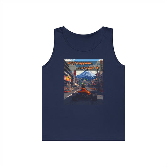 Anime Race Car Unisex Heavy Cotton Tank Top - Shift Happens, Just Drift It