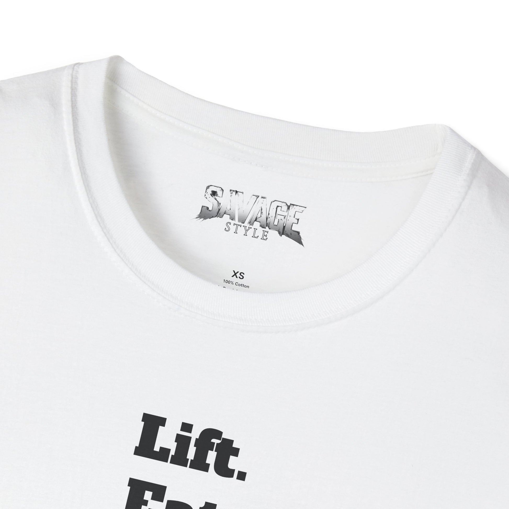 A gamer-inspired gym t-shirt that is perfect for those who love lifting, eating, watching anime, and sleeping. This softstyle unisex t-shirt is made from durable and smooth fabric, making it comfortable to wear all year round. The classic fit and crew neckline provide a versatile style suitable for any occasion.