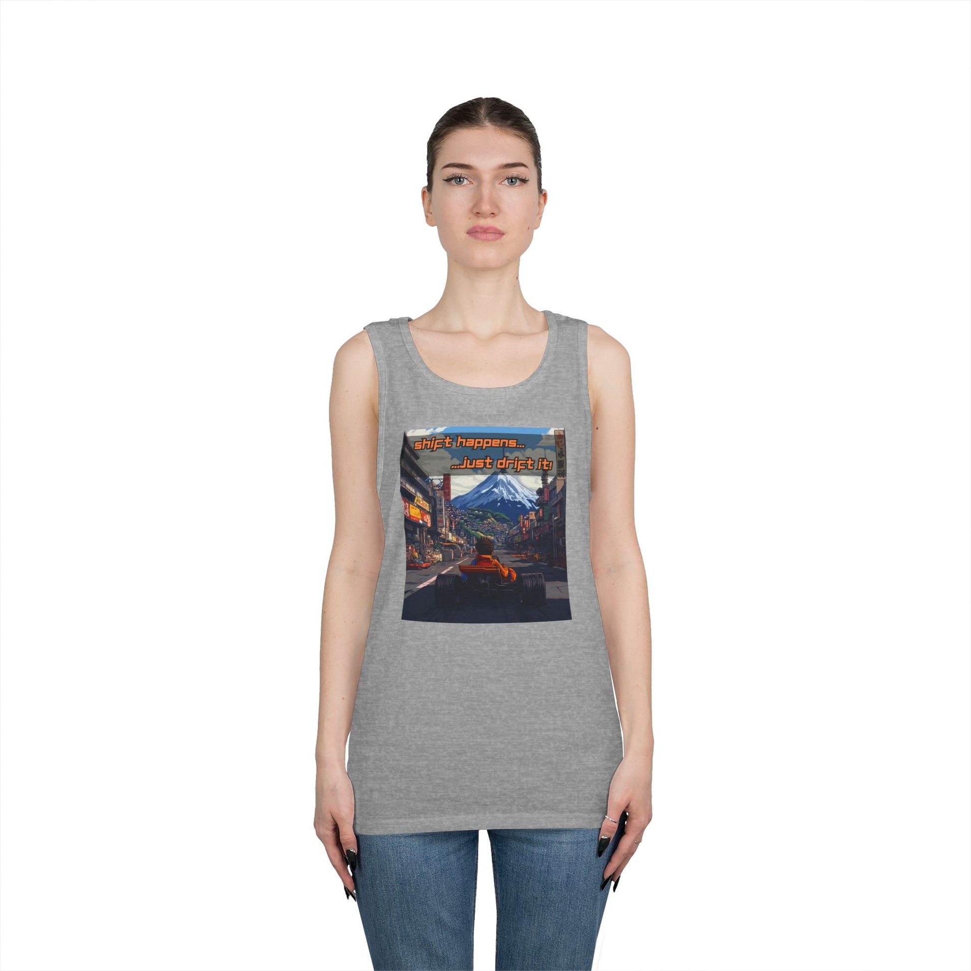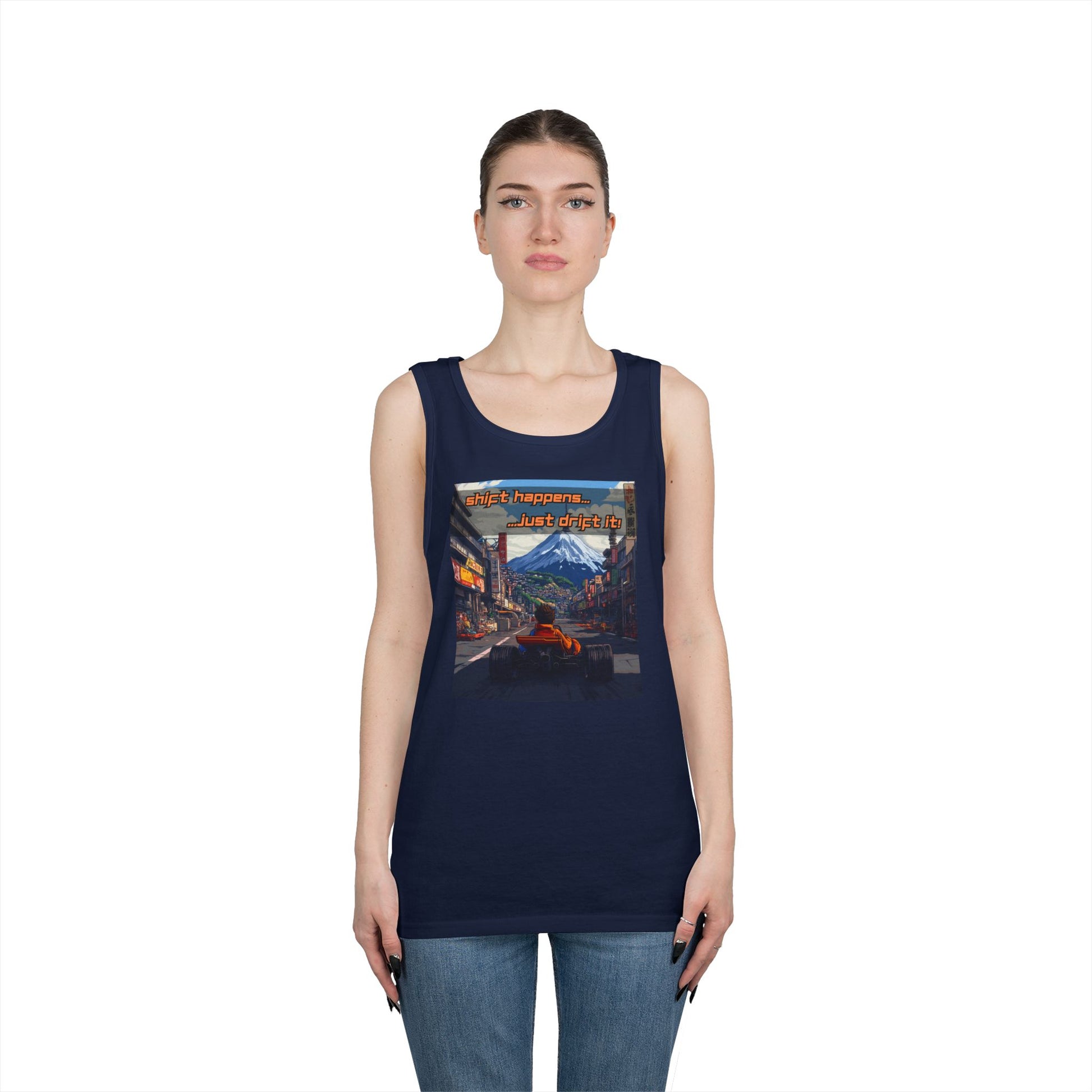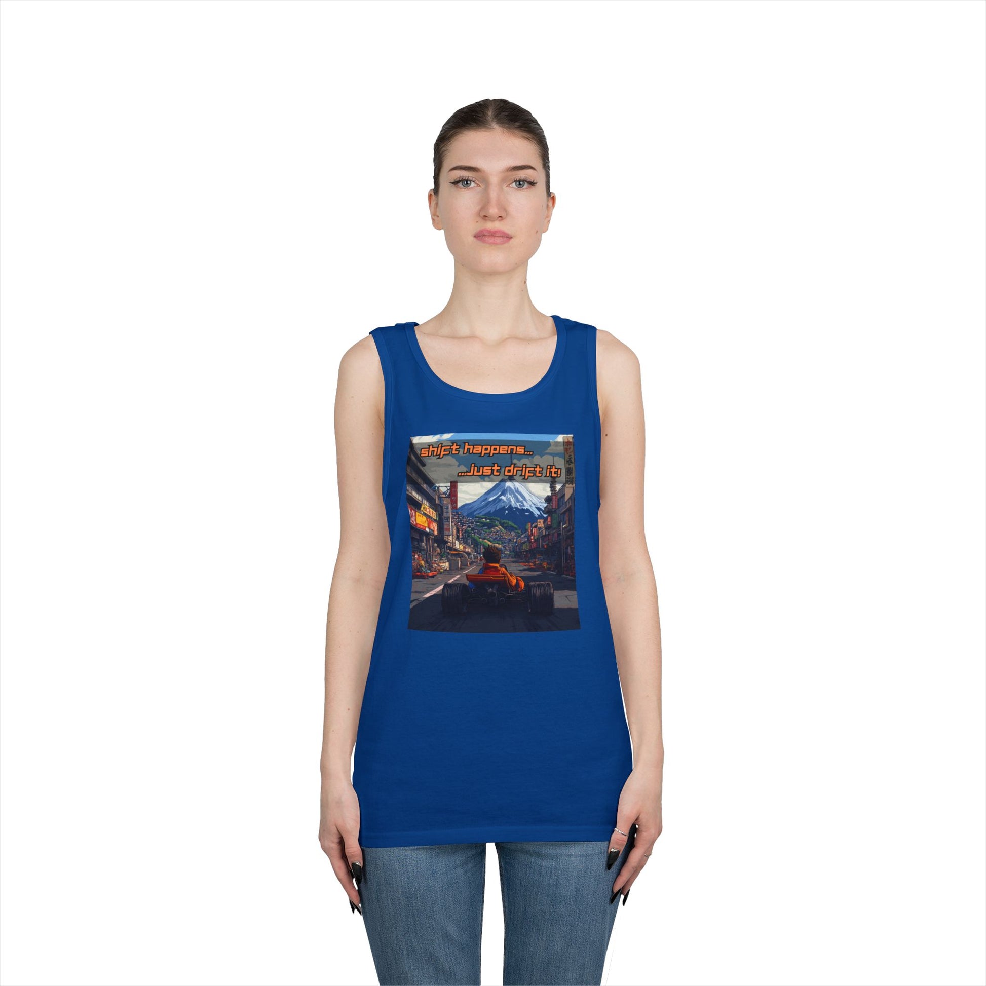 Anime Race Car Unisex Heavy Cotton Tank Top - Shift Happens, Just Drift It
