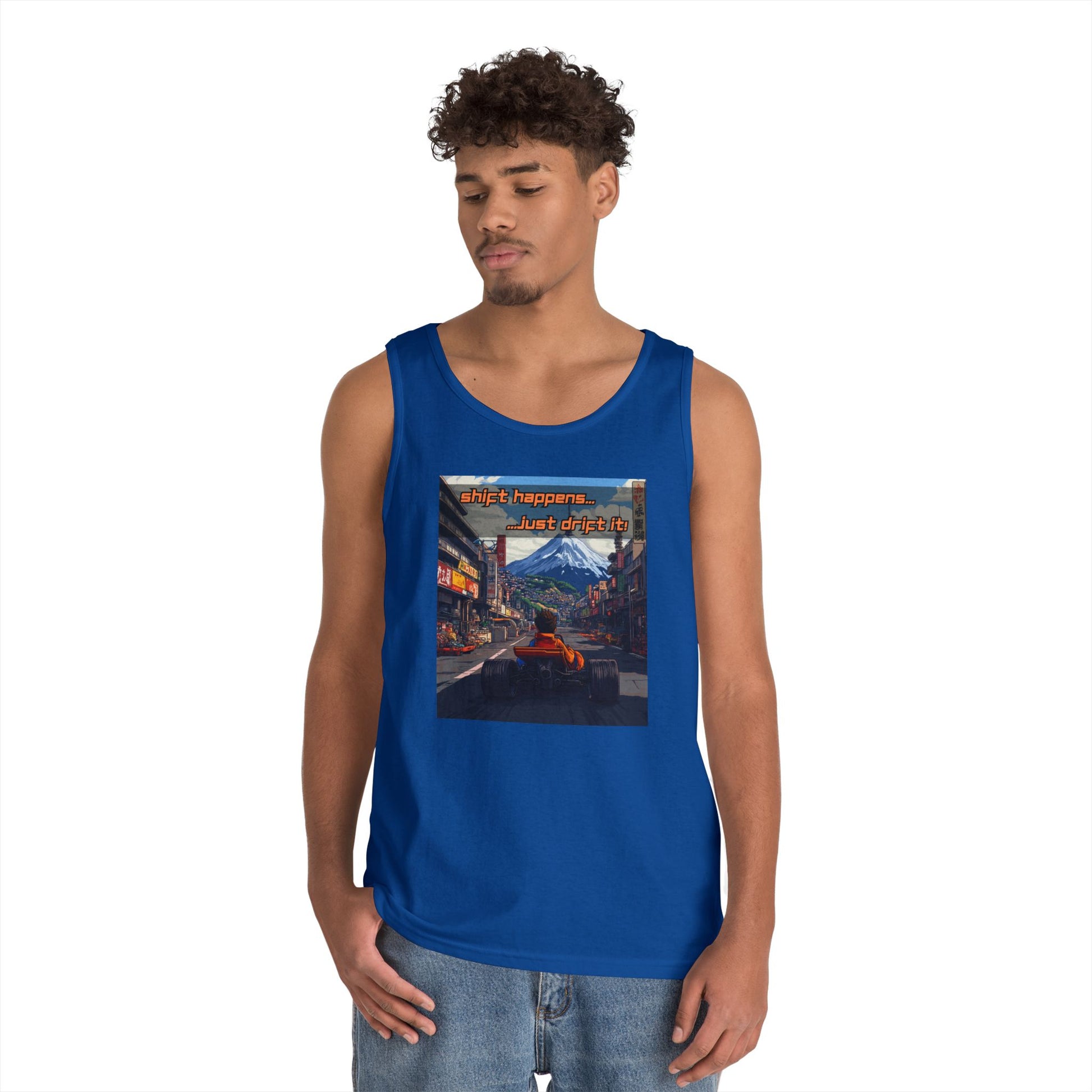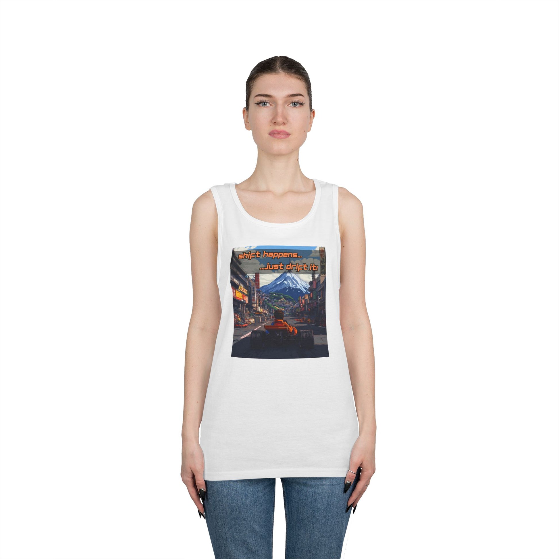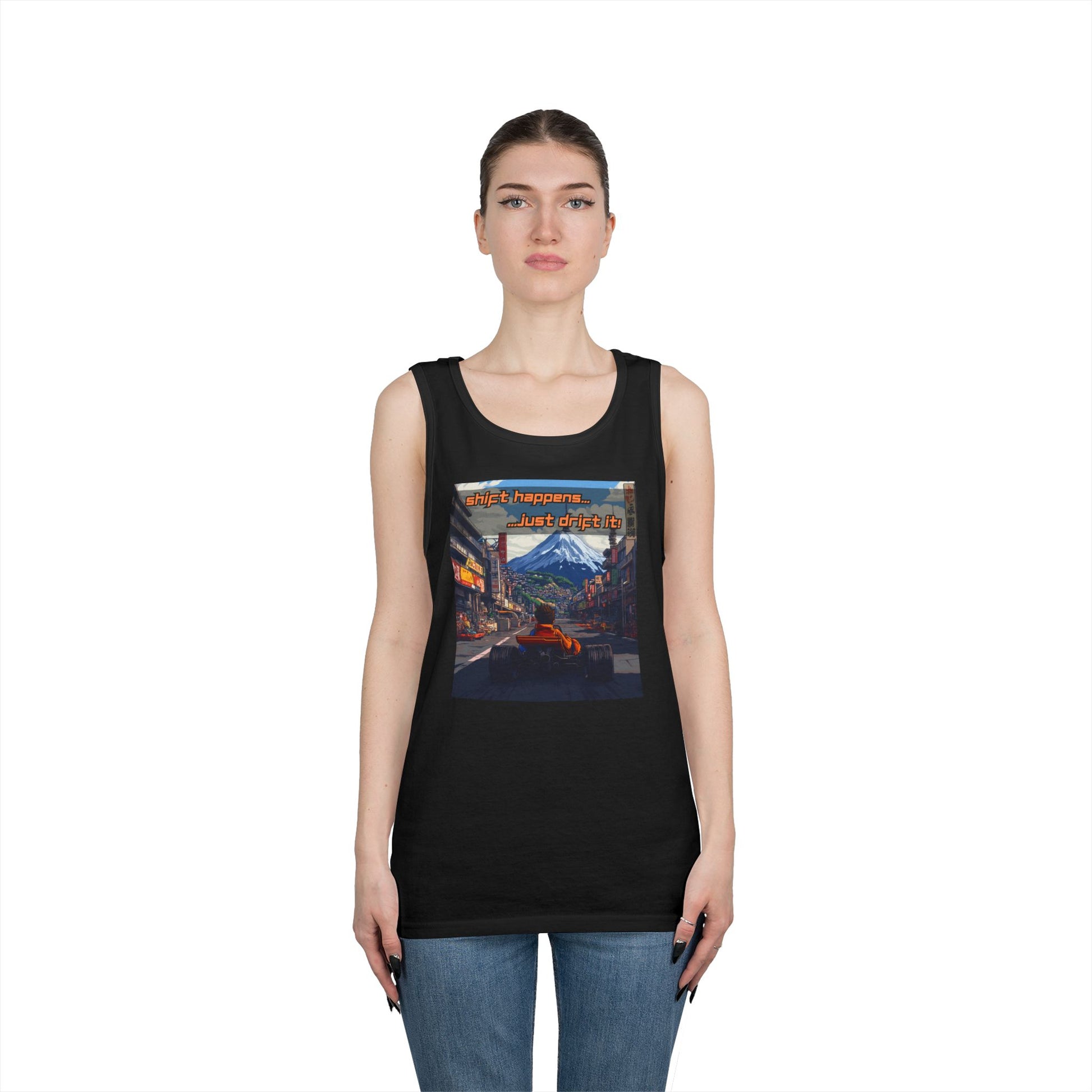 Anime Race Car Unisex Heavy Cotton Tank Top - Shift Happens, Just Drift It
