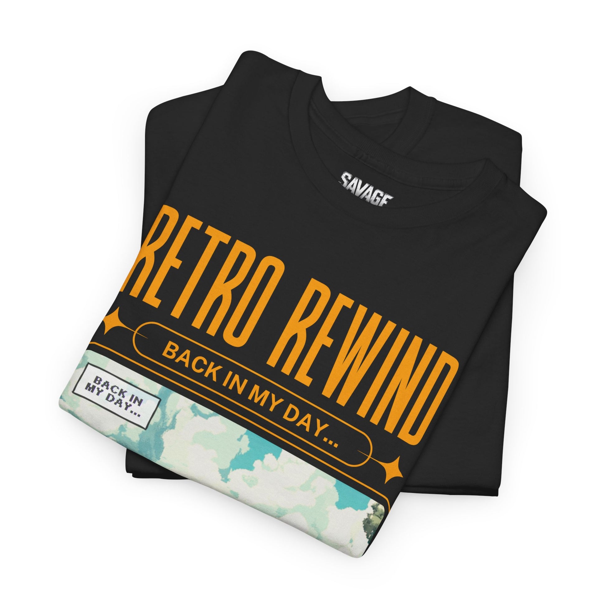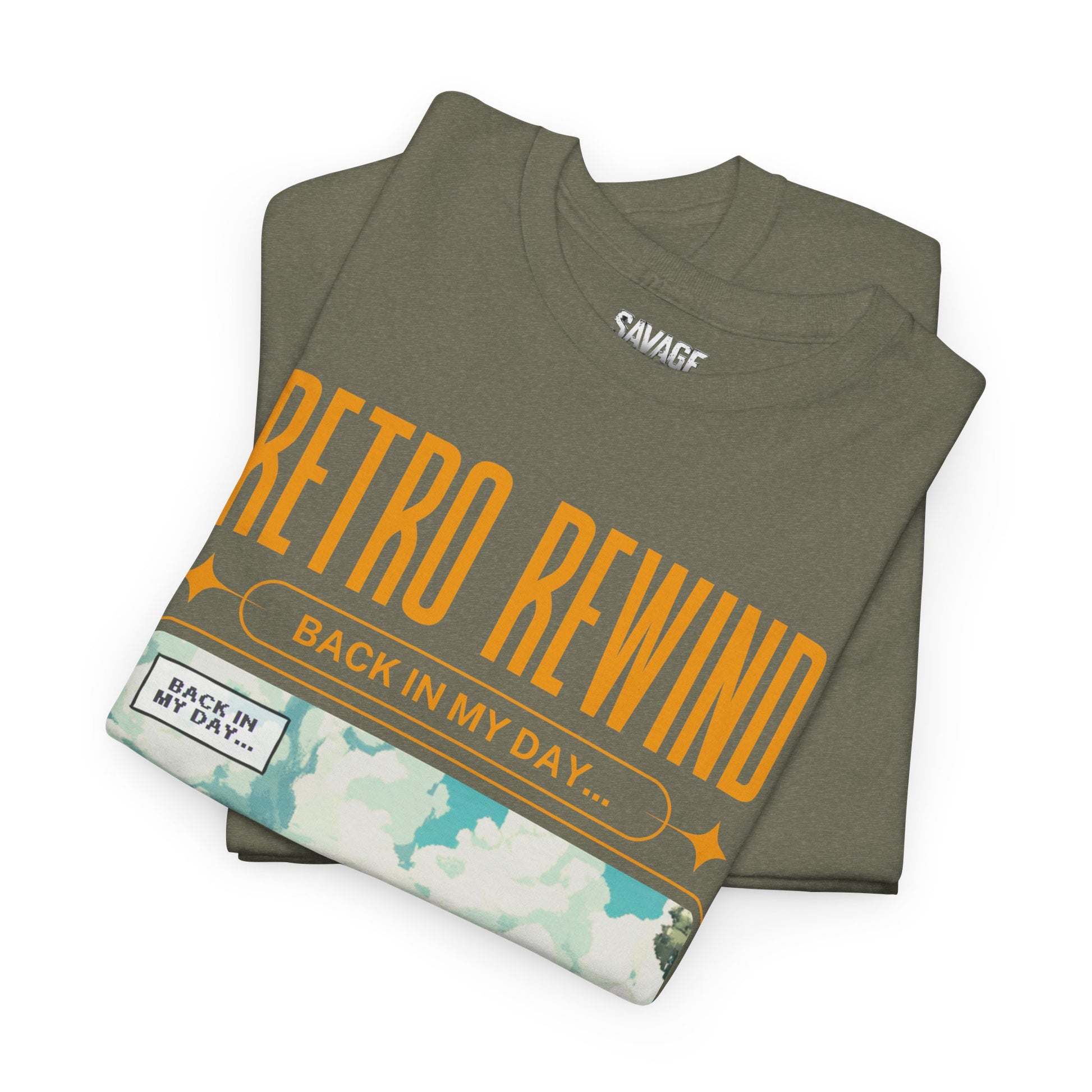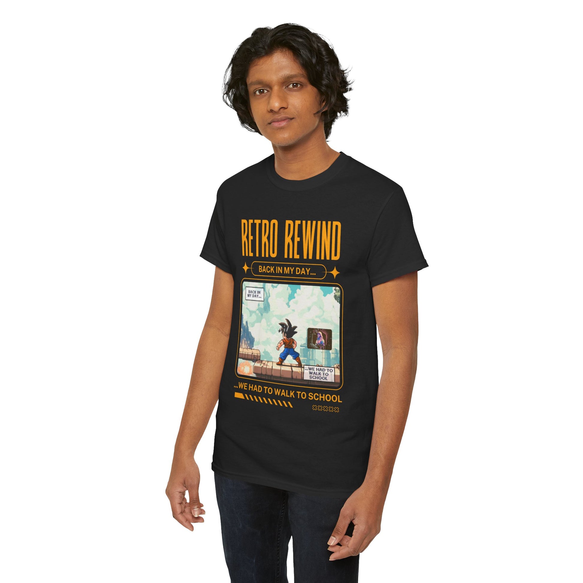 Retro gamer inspired tee shirt "Back In My Day...". This tee gives off a nostalgic and playful vibe, perfect for gamers and pop culture enthusiasts. It can be worn casually or as a statement piece for a fun, relaxed look.