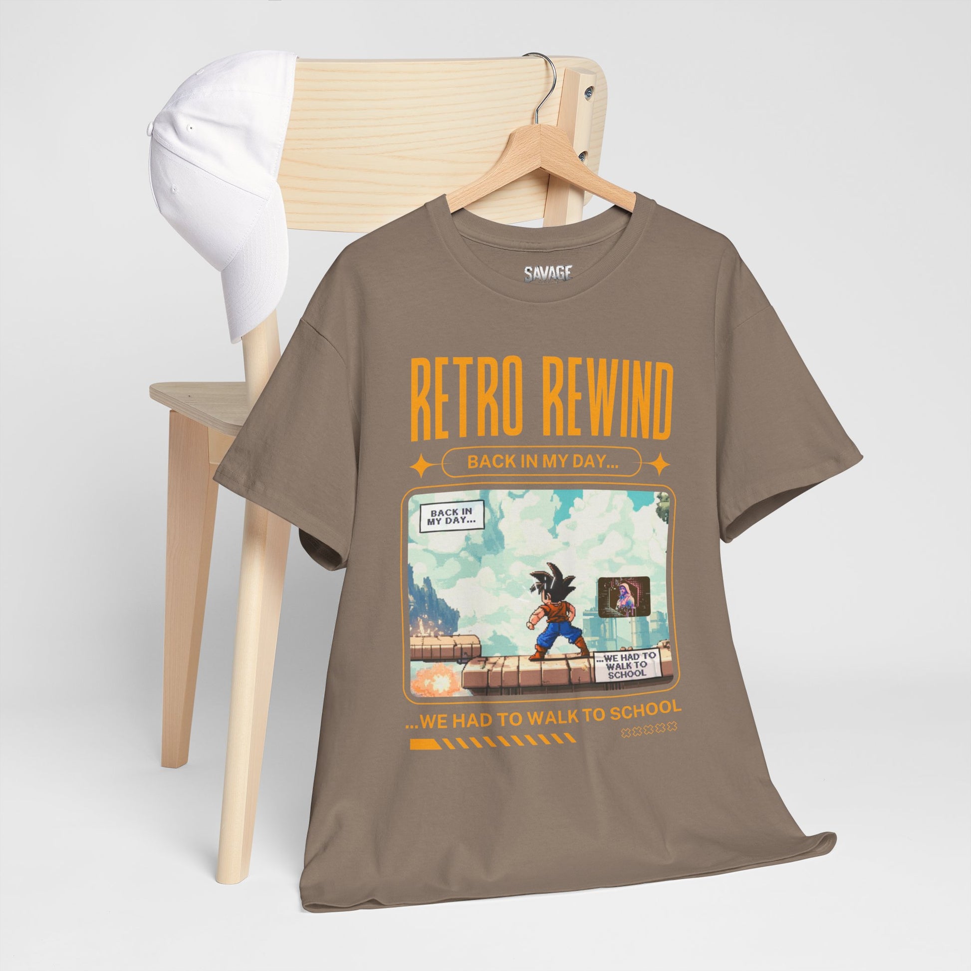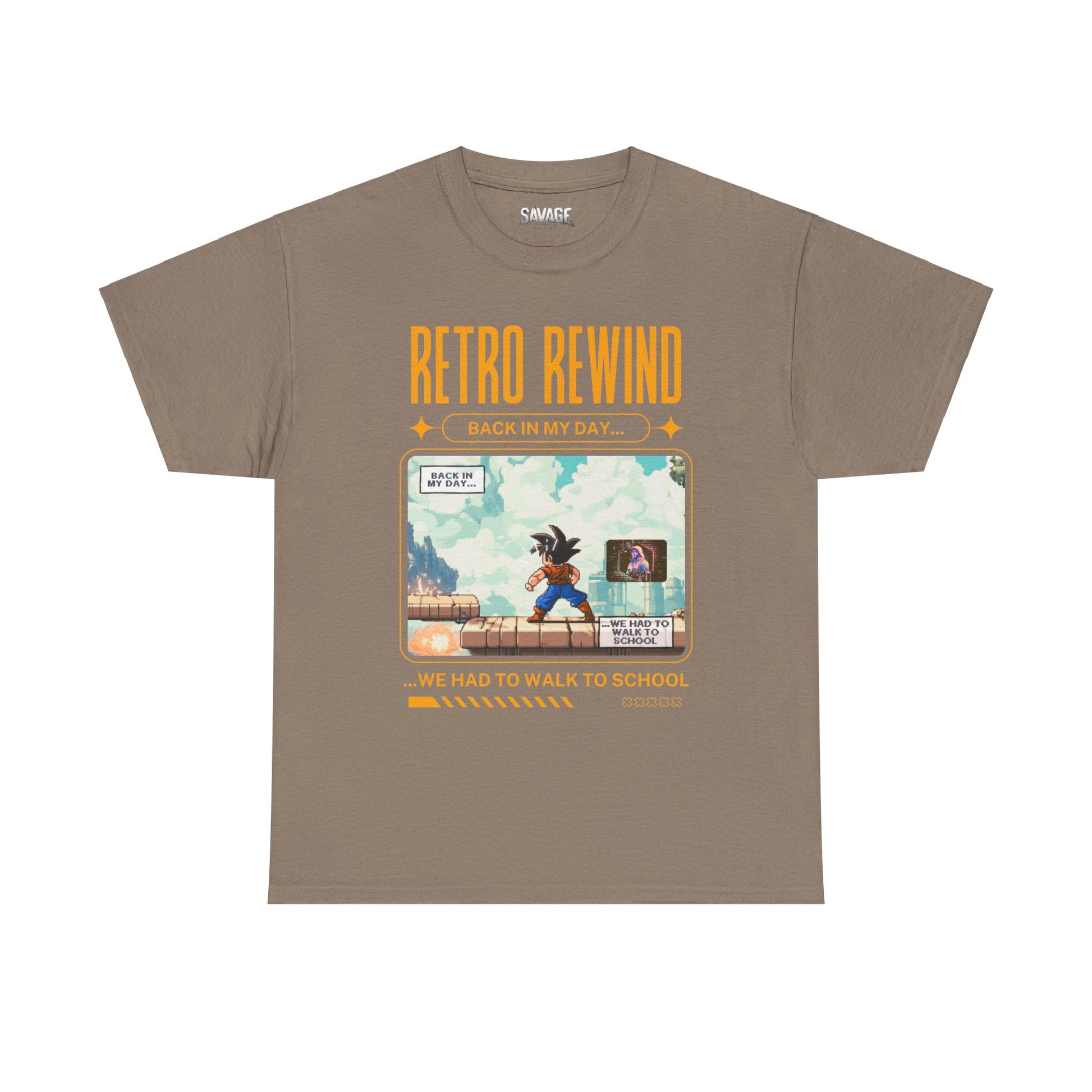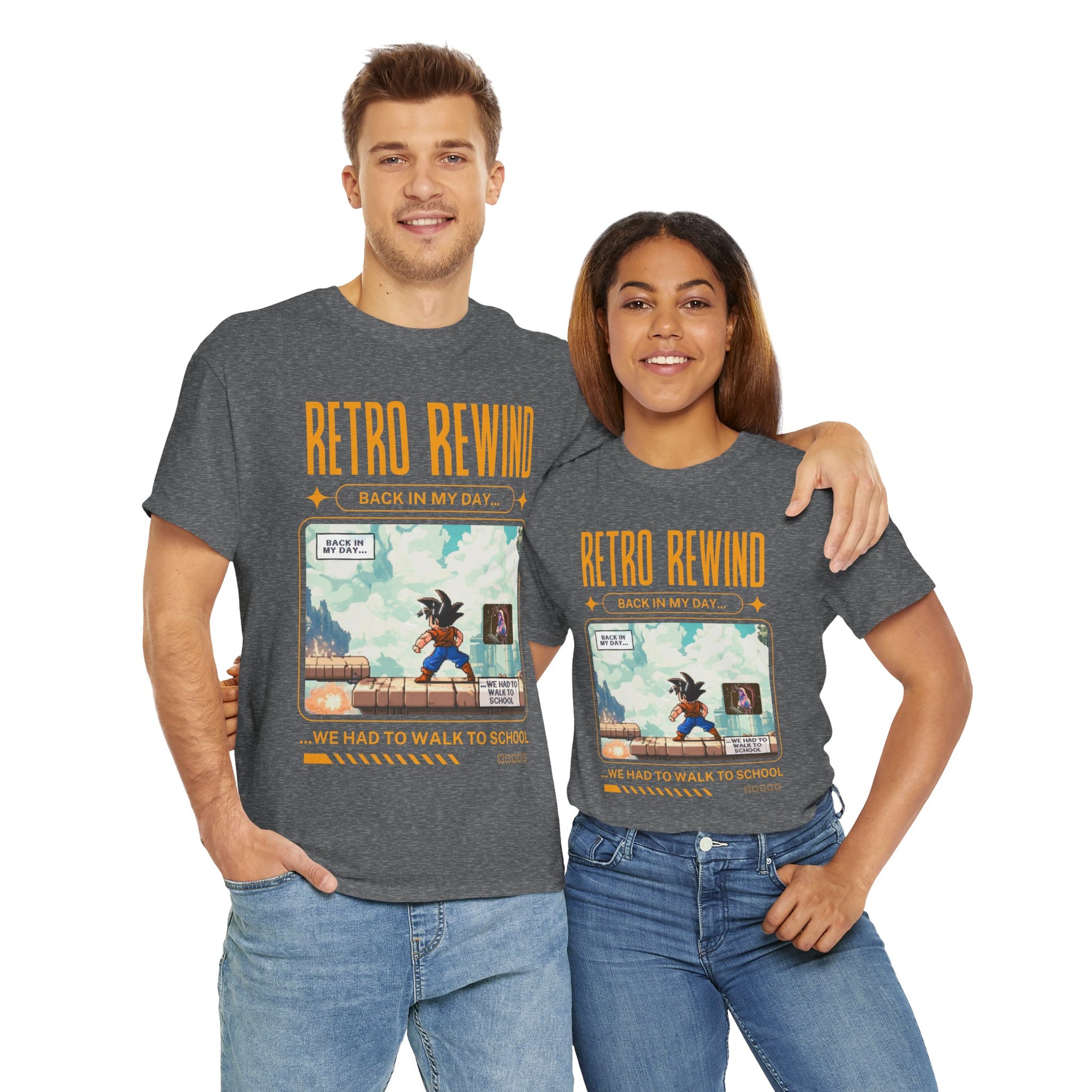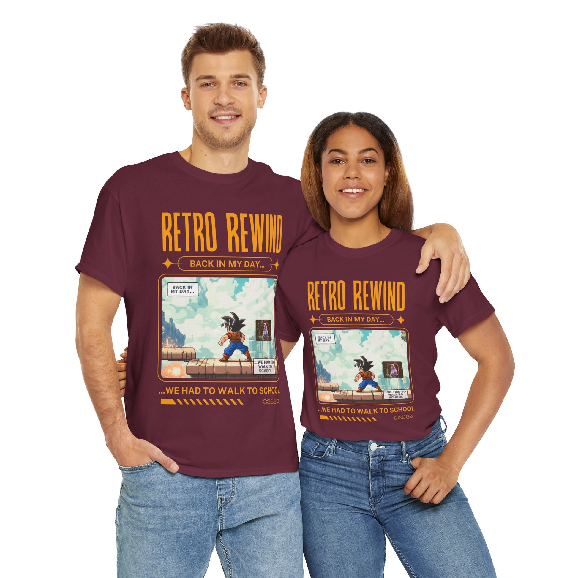 Retro gamer inspired tee shirt "Back In My Day...". This tee gives off a nostalgic and playful vibe, perfect for gamers and pop culture enthusiasts. It can be worn casually or as a statement piece for a fun, relaxed look.