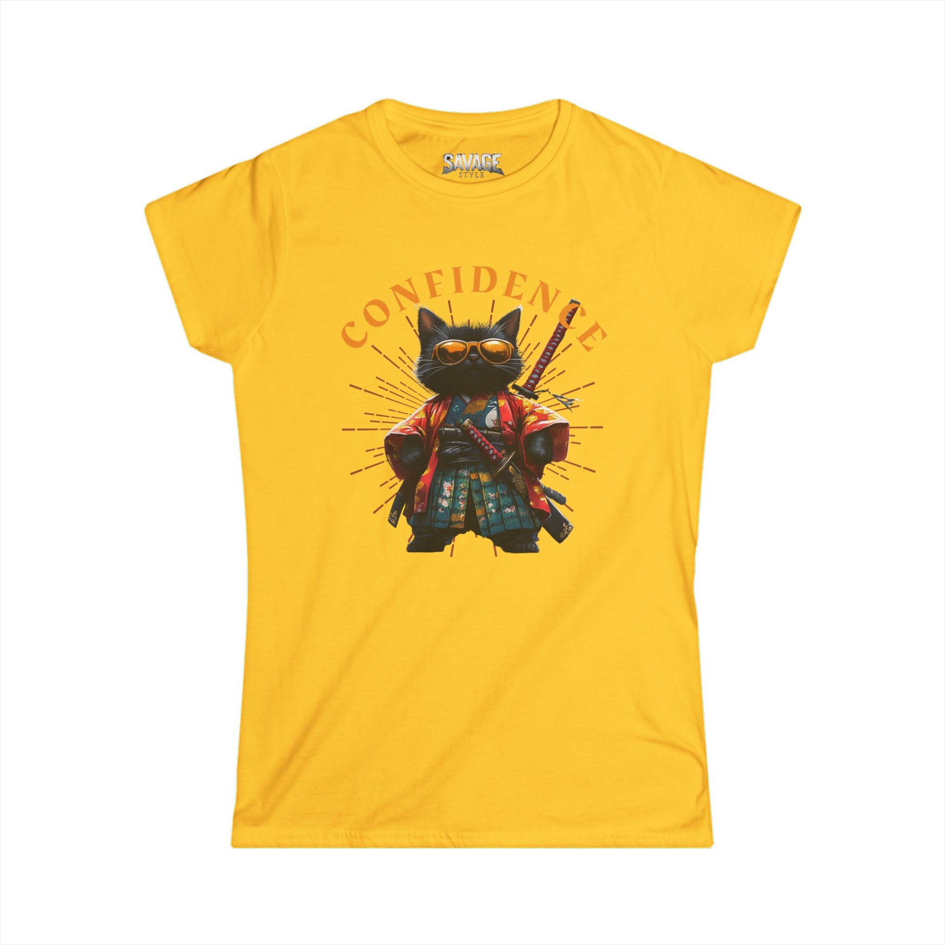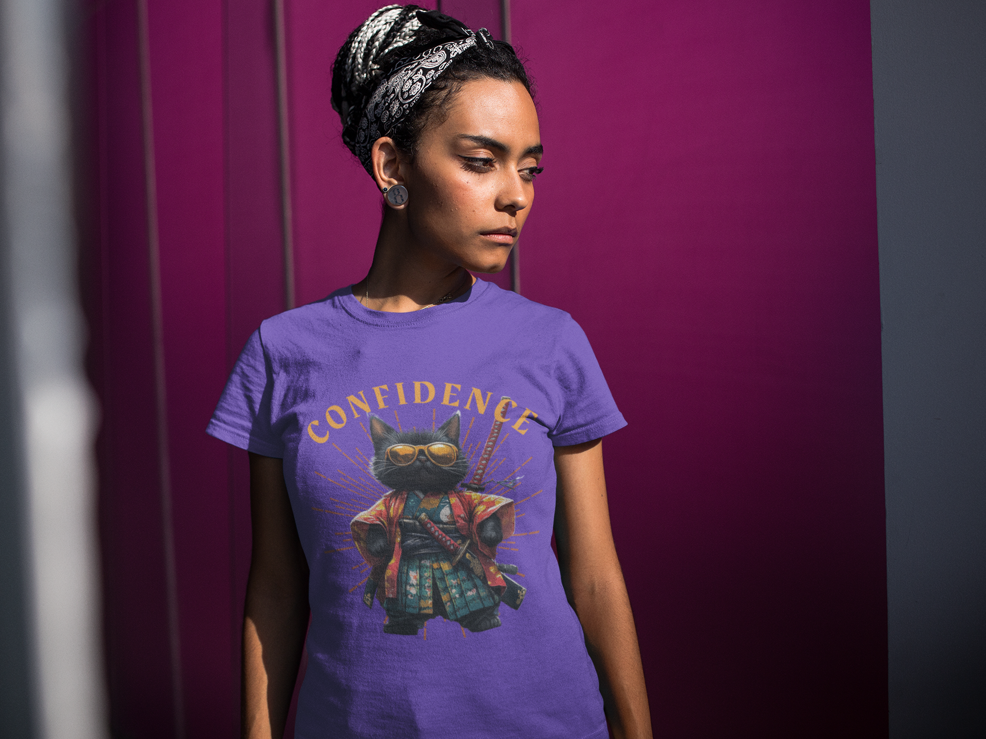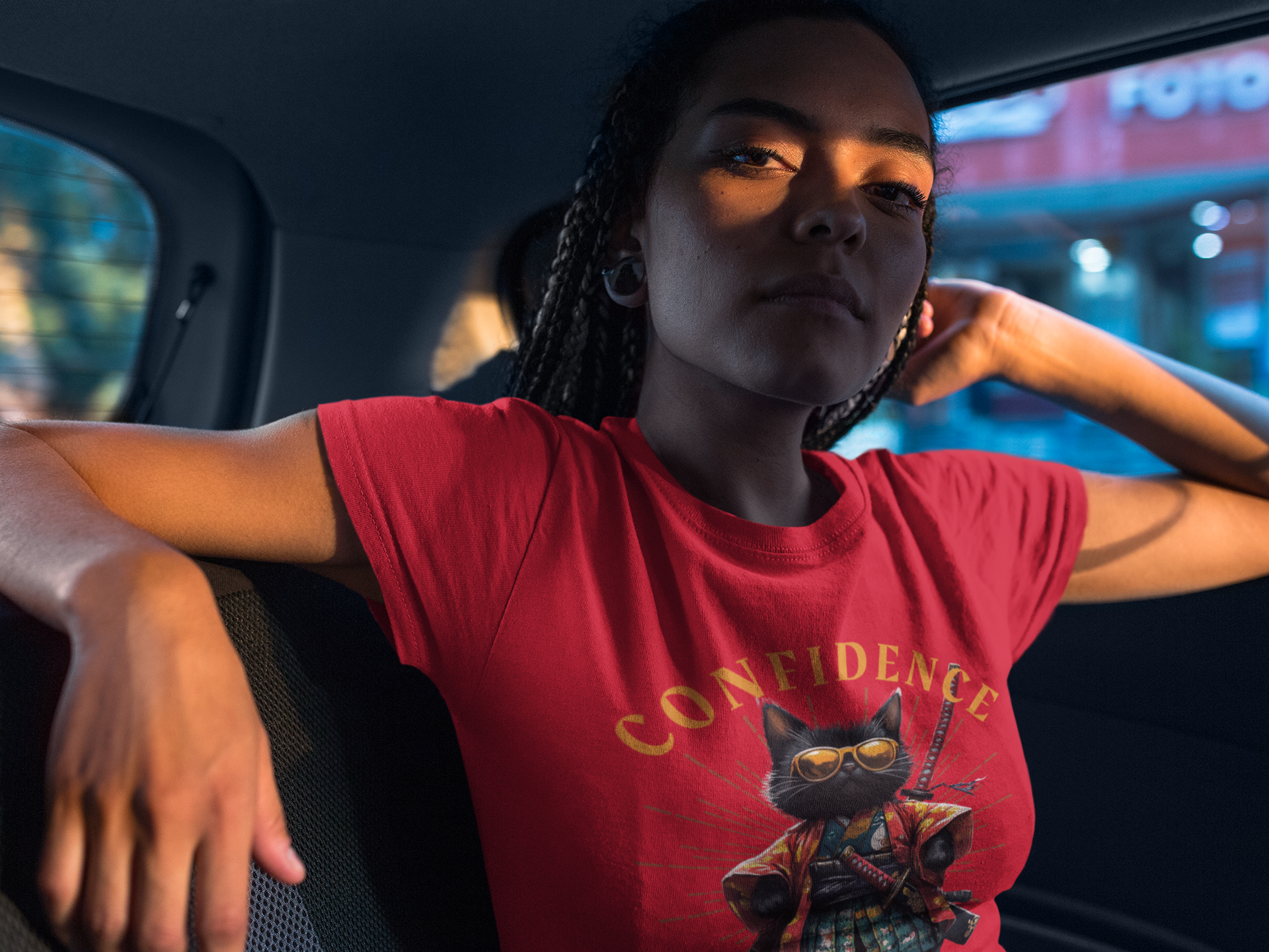 Confident Cat Tee for women that exudes a bold and fearless vibe. Perfect for cat lovers, anime enthusiasts, and those who appreciate unique and quirky designs. Ideal for casual wear, lounging, or as a statement piece for a fun and relaxed outfit. Suitable for birthdays, anime conventions, or any casual occasion.