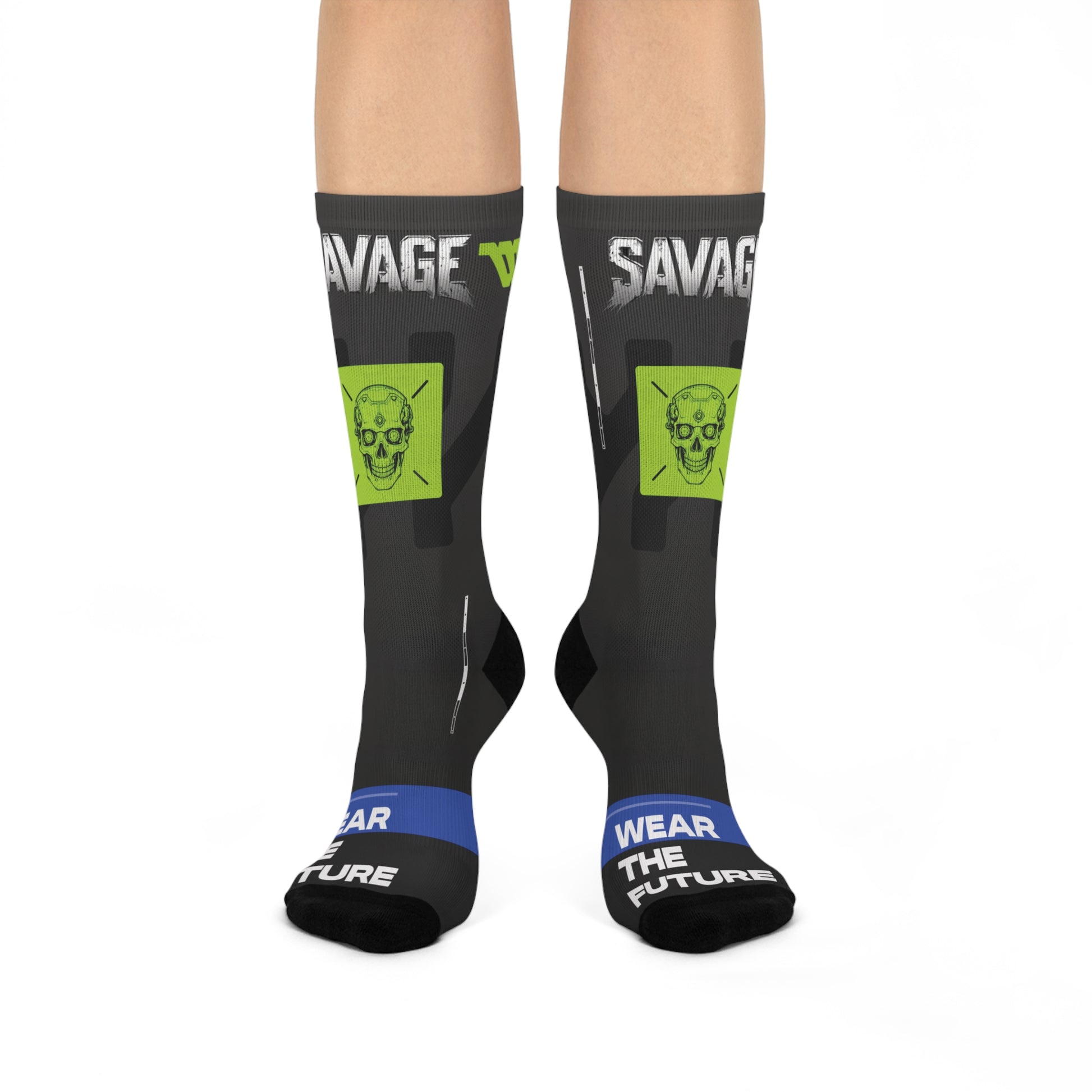 Experience the comfort and style with these Wear the Future Cushioned Crew Socks. Perfect for casual, dress, or activewear, these crew length socks feature an all-over print design with vibrant colors. Made from high-quality materials, these socks are stretchy, smooth, and cushioned for added comfort. One size fits most, making them a great gift for anyone who loves fun and colorful socks. Ideal for everyday wear, gifts, holidays, and special occasions.
