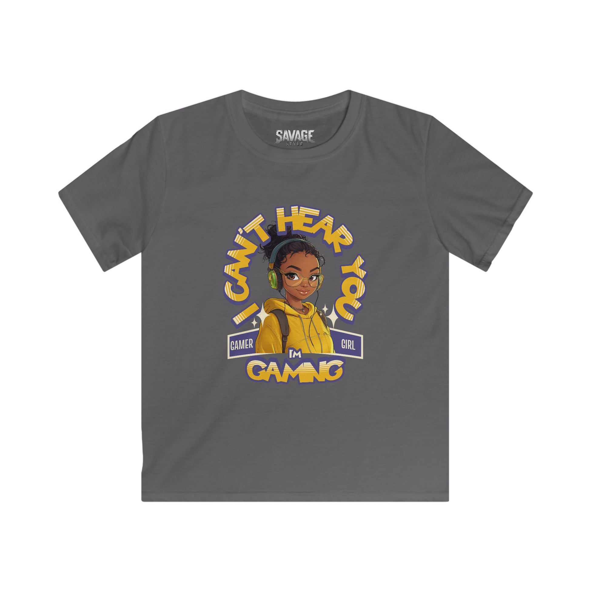 Gamer Girl Kids Softstyle Tee - "I Can't Hear You, I'm Gaming"