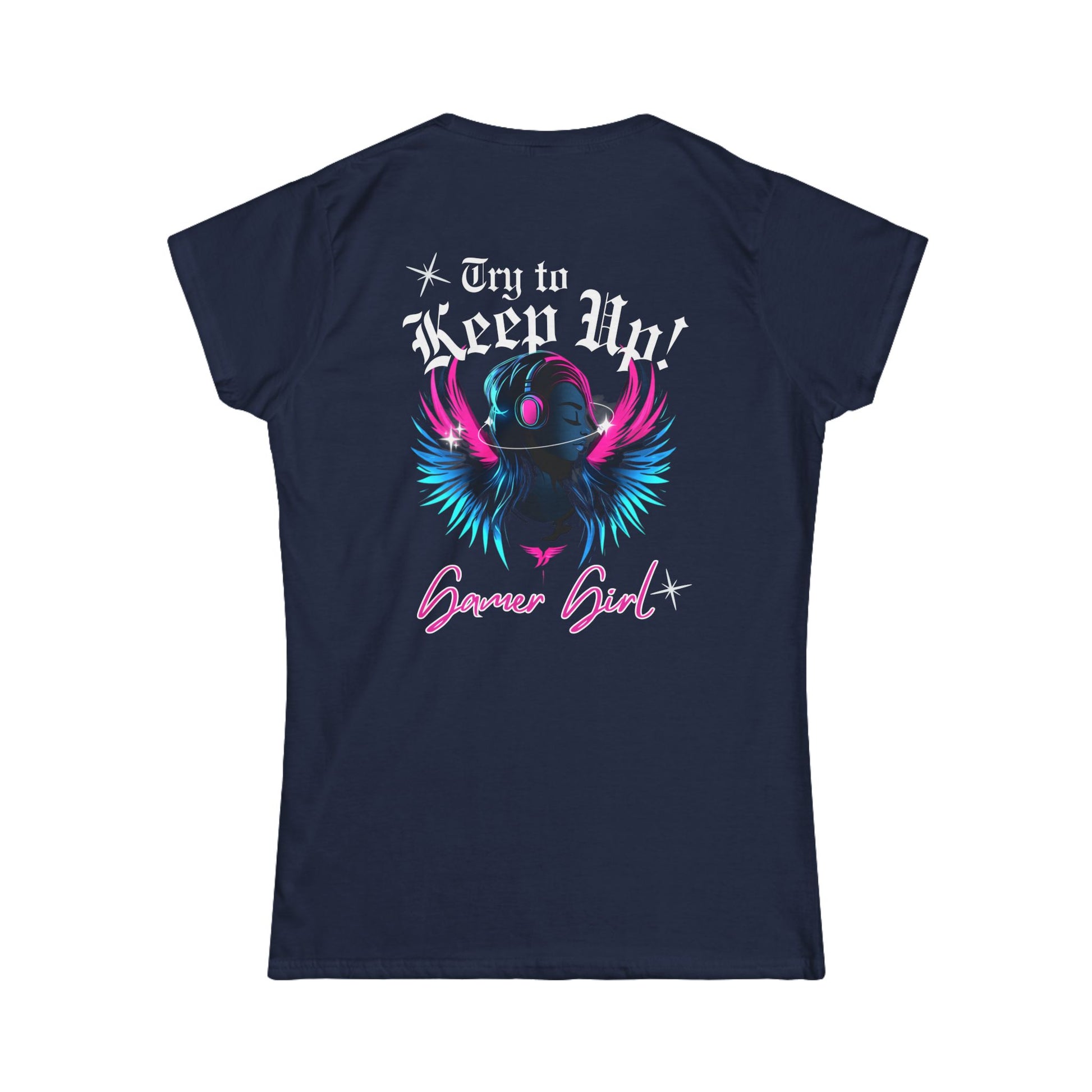 Stay stylish and comfortable with the Try to keep up Gamer Girl Women's Softstyle Tee. Perfect for female gamers, this tee exudes a fun and playful vibe, making it great for casual wear or gaming sessions with friends. Ideal for birthdays, gaming events, and casual hangouts.