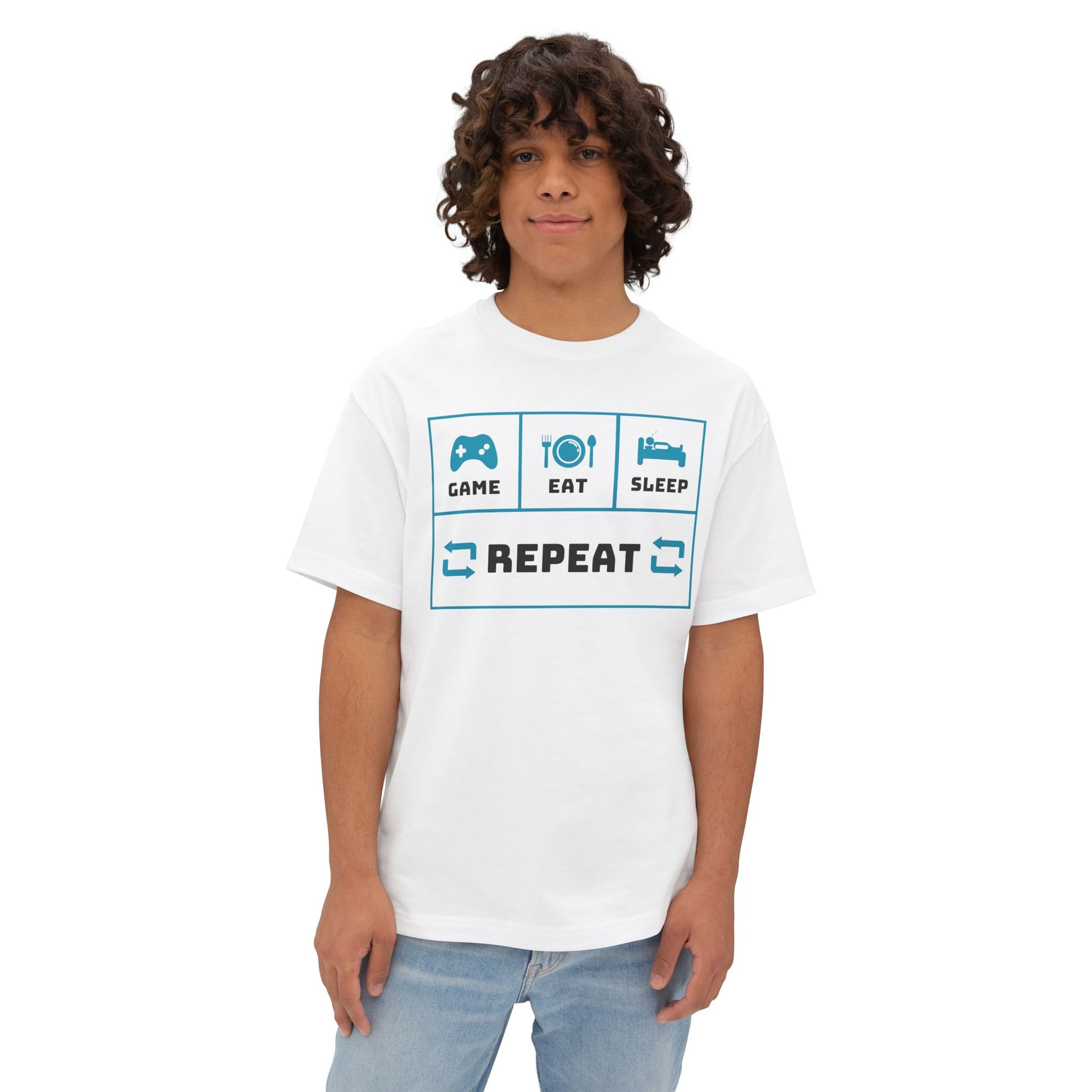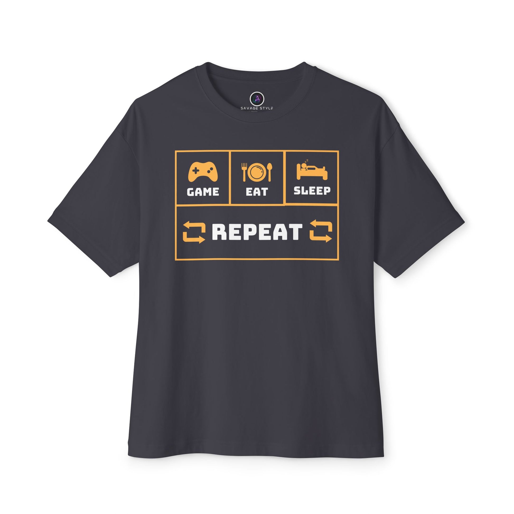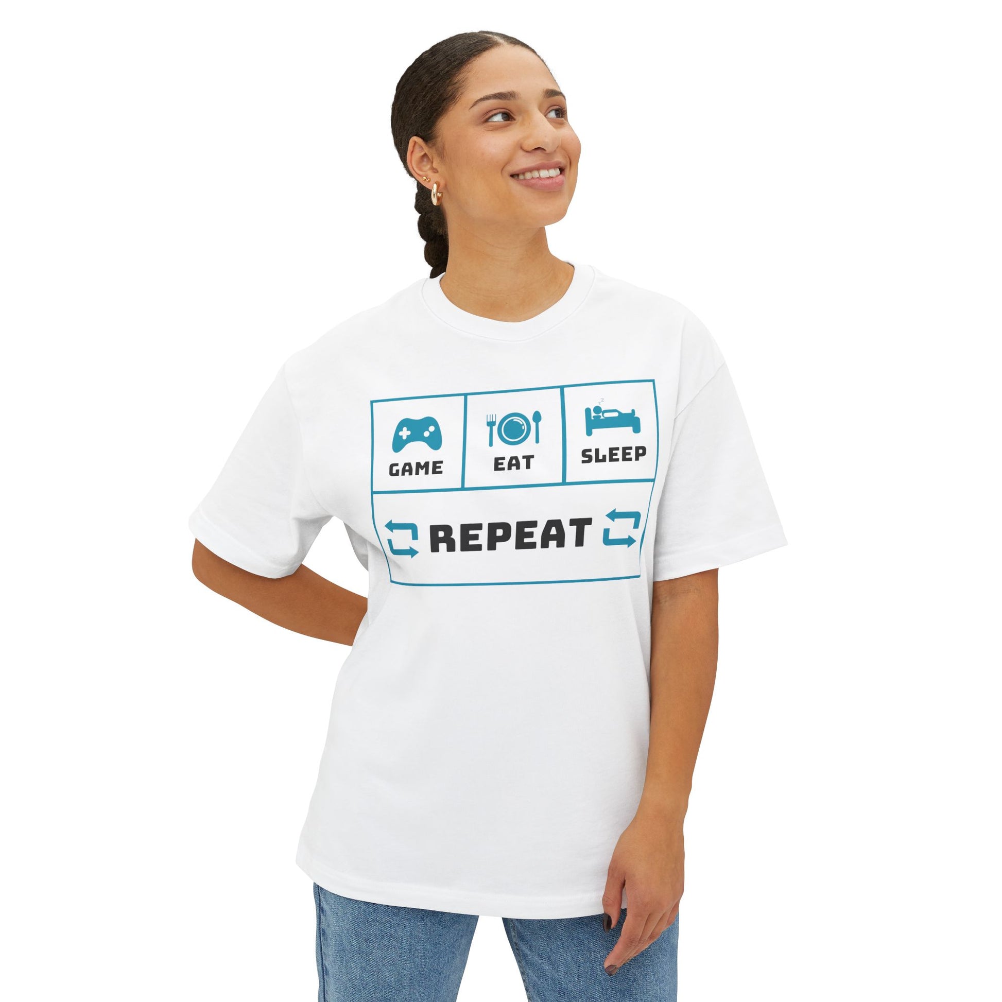 This Game, Eat, Sleep, Repeat T-Shirt is perfect for those who love to relax and enjoy their favorite activities. The oversized boxy fit provides a comfortable and laid-back vibe, making it ideal for lounging at home or running errands. This tee is relevant for casual wear, gaming enthusiasts, foodies, and those who prioritize self-care. It's great for gifting on birthdays, holidays, or just to treat yourself.