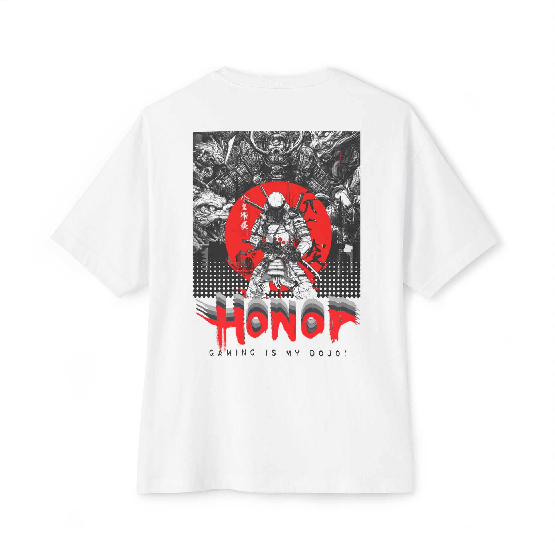 This Honor "Gaming is My Dojo" Oversized Boxy Tee gives off a casual and relaxed vibe, perfect for gamers and esports enthusiasts. It can be worn for gaming sessions, lounging at home, or hanging out with friends. This tee is relevant for gaming conventions, video game release dates, and esports tournaments.