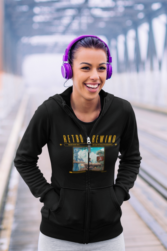 Retro Rewind Hoodie - Back in my day we had to walk to school. This cozy and nostalgic sweatshirt gives off a retro vibe, perfect for those who appreciate a throwback look. Ideal for adults looking for a comfortable and stylish addition to their wardrobe. Relevant for casual wear, school spirit days, and retro-themed events.