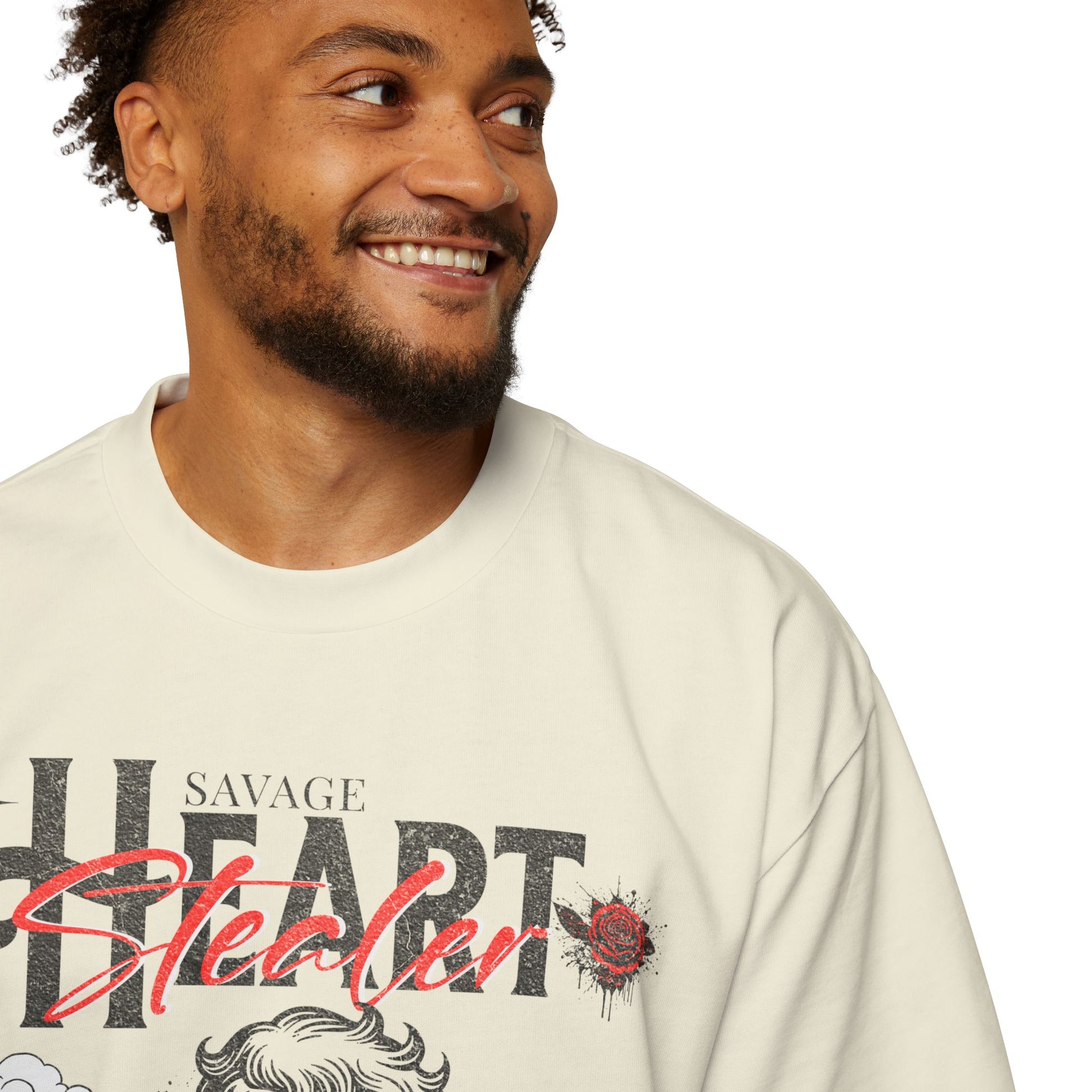 The Savage Heart Stealer Men's Oversized T-Shirt is a must-have for those who love bold and edgy style. With dropped shoulders and a relaxed fit, this T-Shirt exudes a cool and effortless vibe, perfect for casual outings or lounging at home. Ideal for individuals who want to make a statement from their heart.