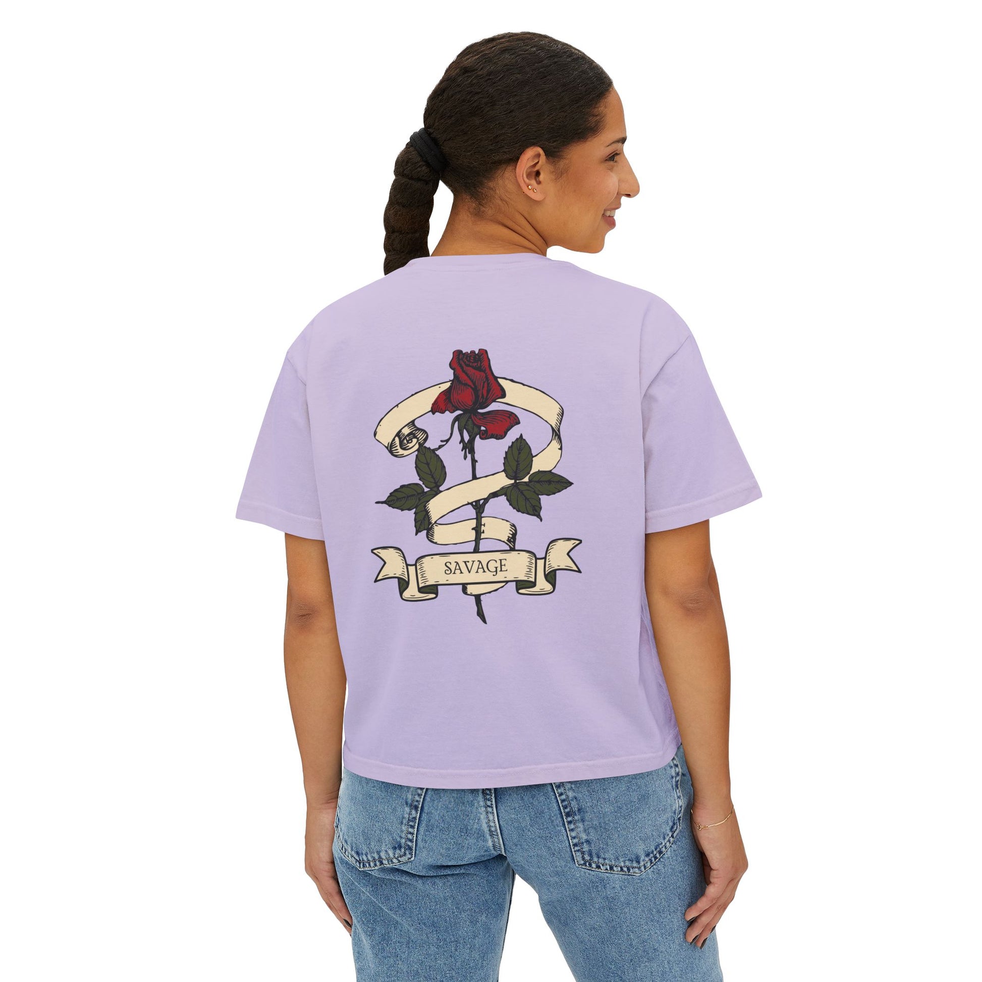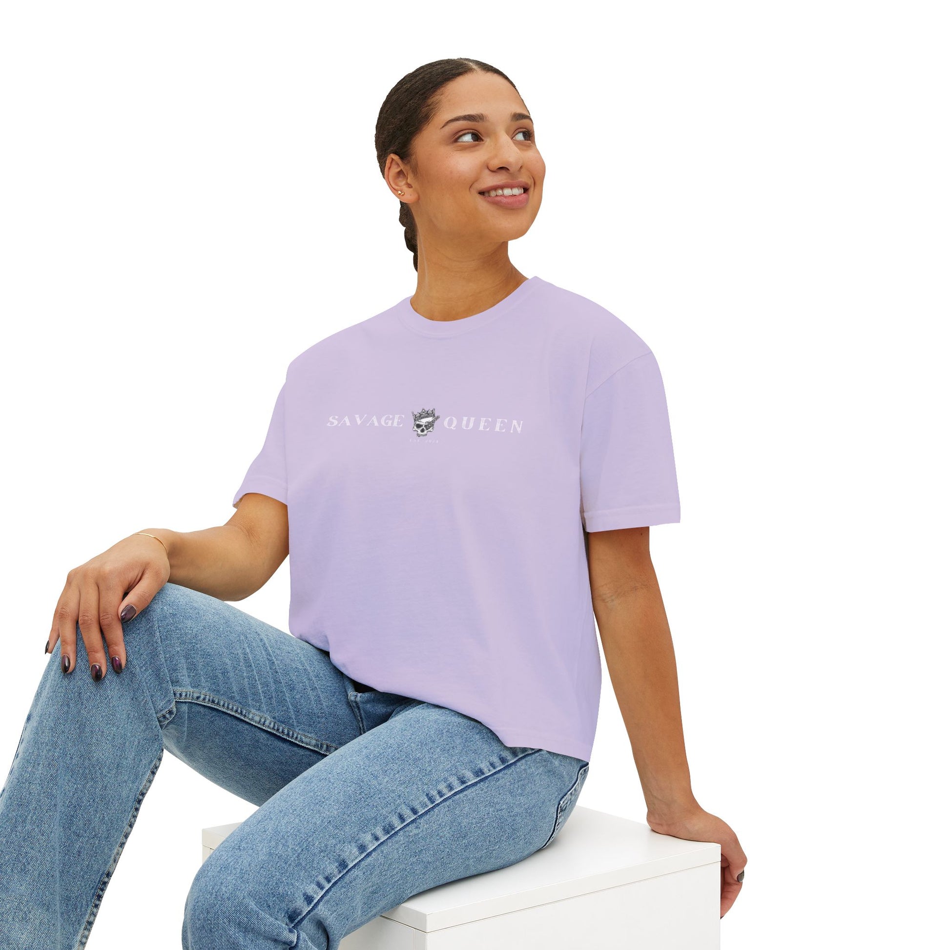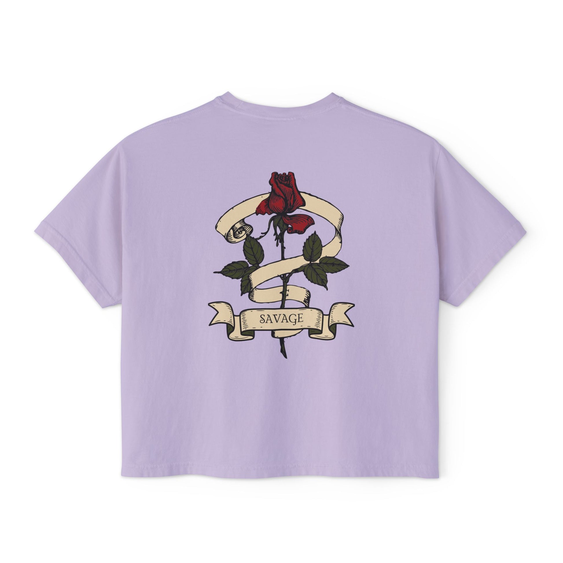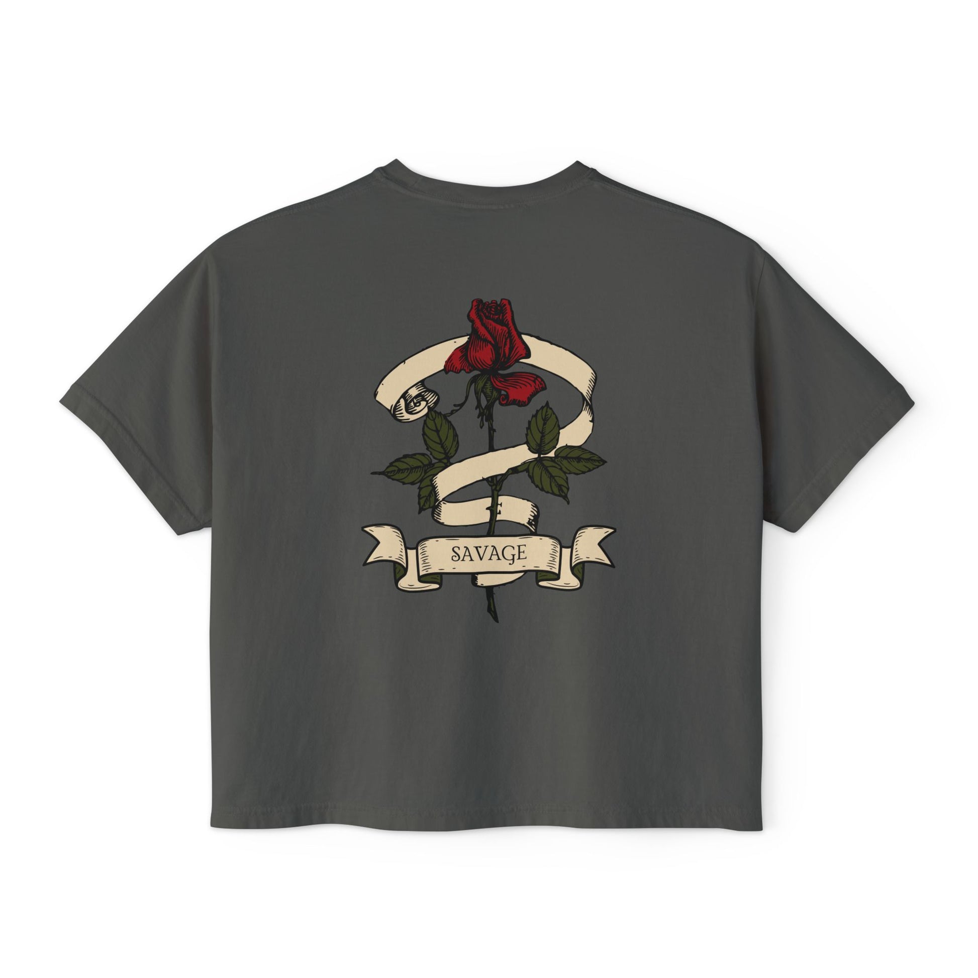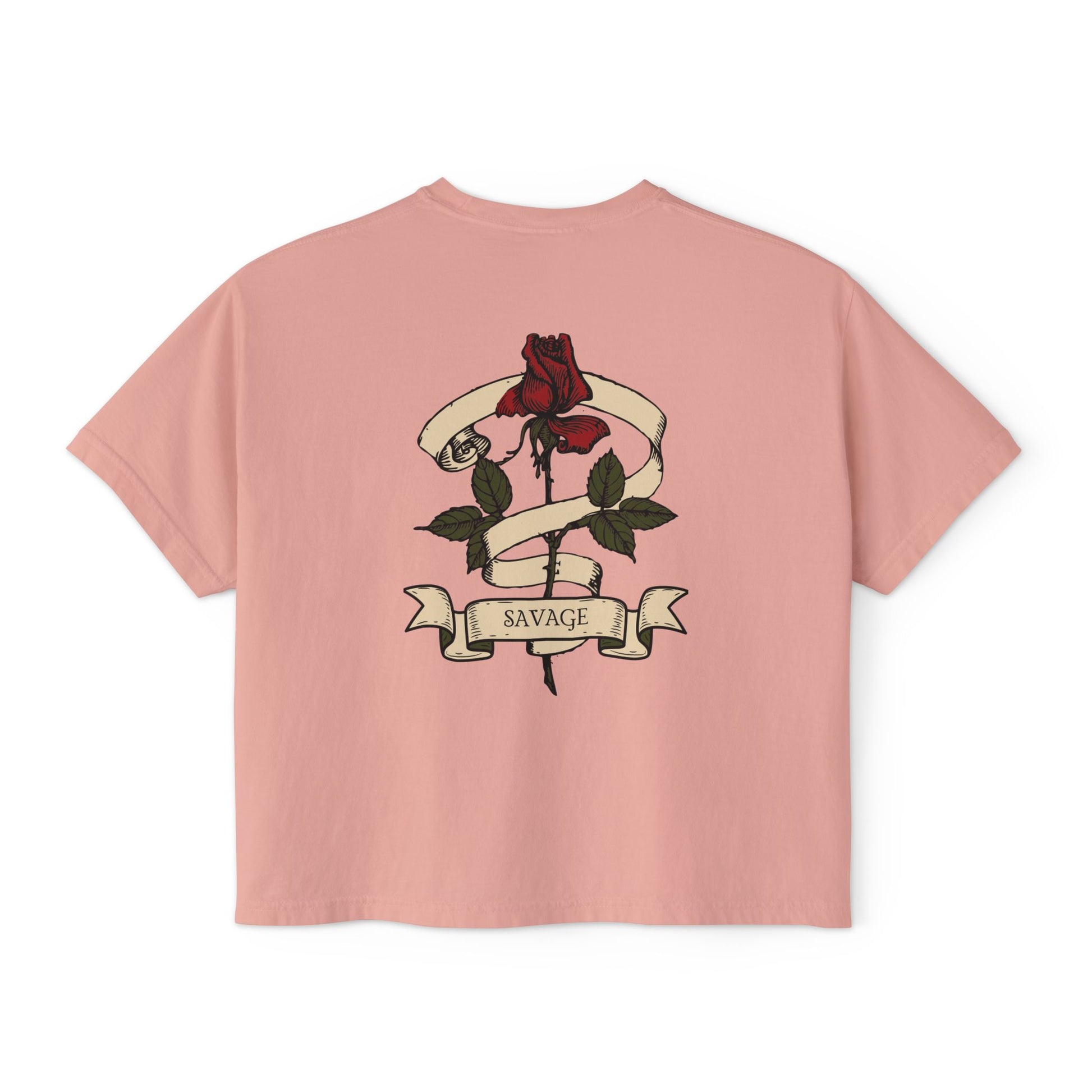 The Savage Queen Tee is a stylish and bold addition to any wardrobe. With its boxy fit and vintage pigment dye colors, this tee exudes confidence and attitude. Perfect for women who want to make a statement in their casual outfits. Ideal for everyday wear, parties, concerts, and festivals.