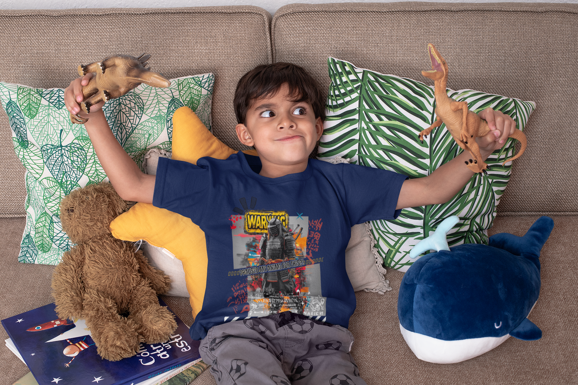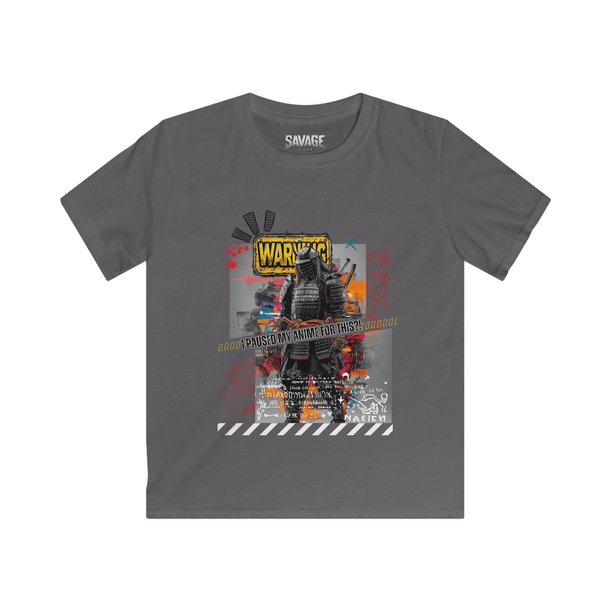 This Kids Tee with Cyberpunk warrior design is perfect for young anime enthusiasts who don't mind pausing their favorite show for a bit. It gives off a cool and edgy vibe, making it a great addition to any kid's wardrobe. Ideal for birthdays, anime conventions, and casual wear.