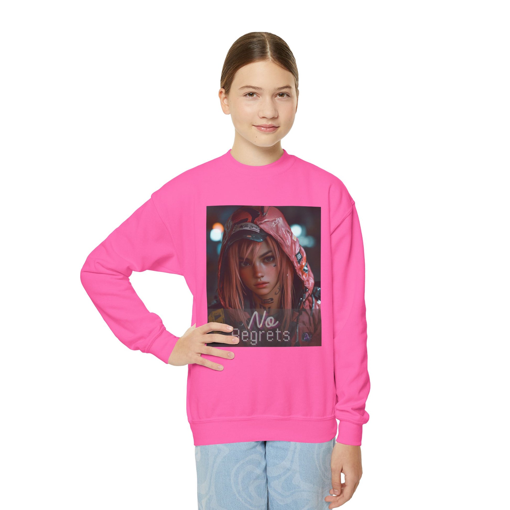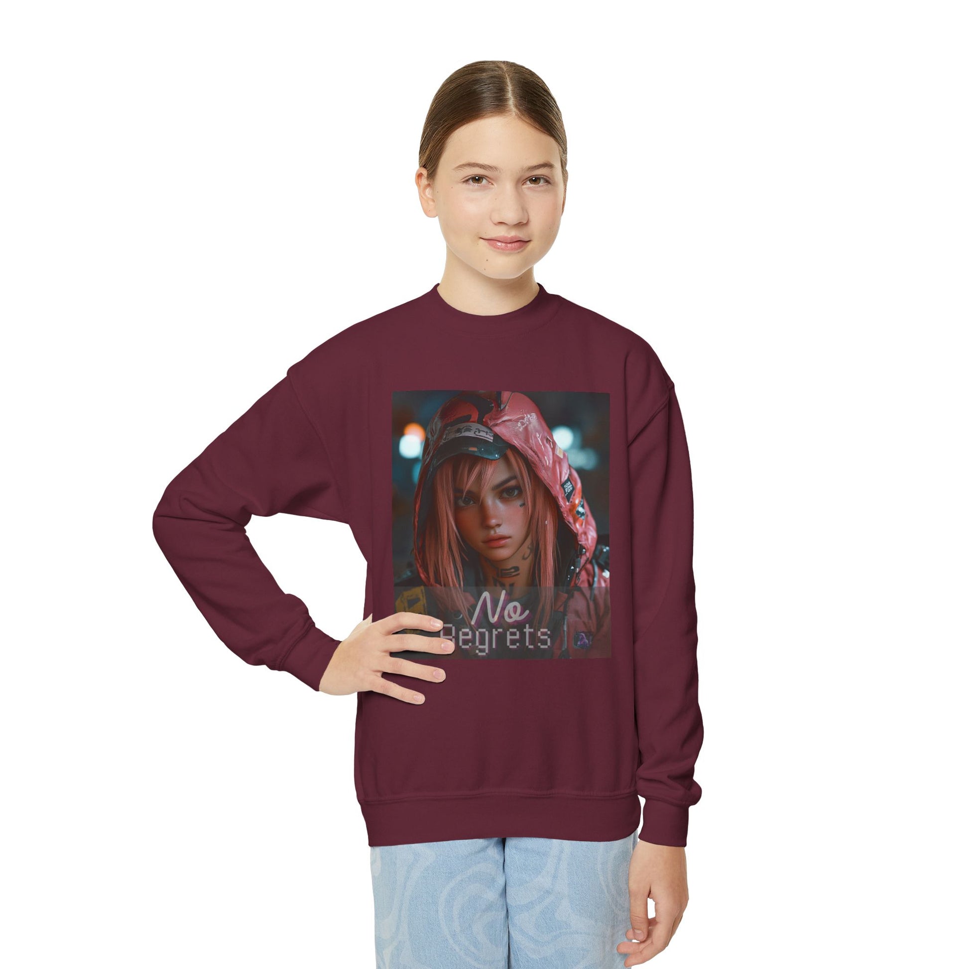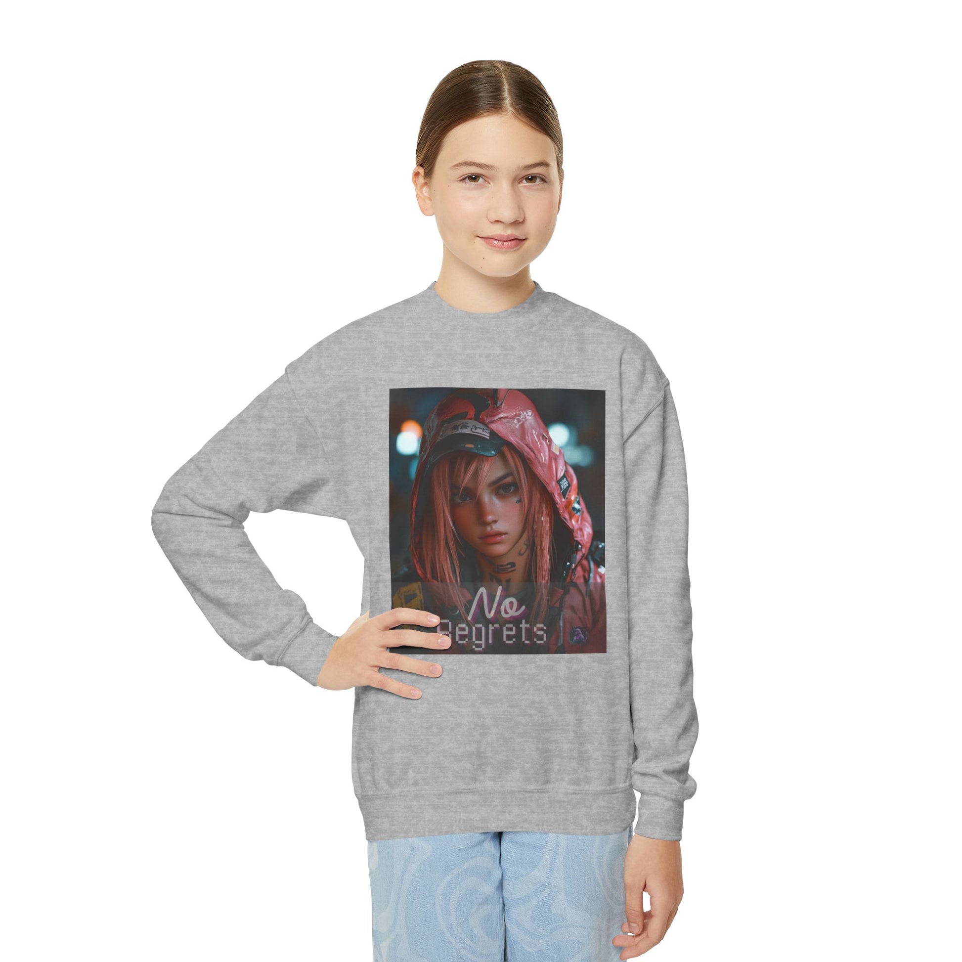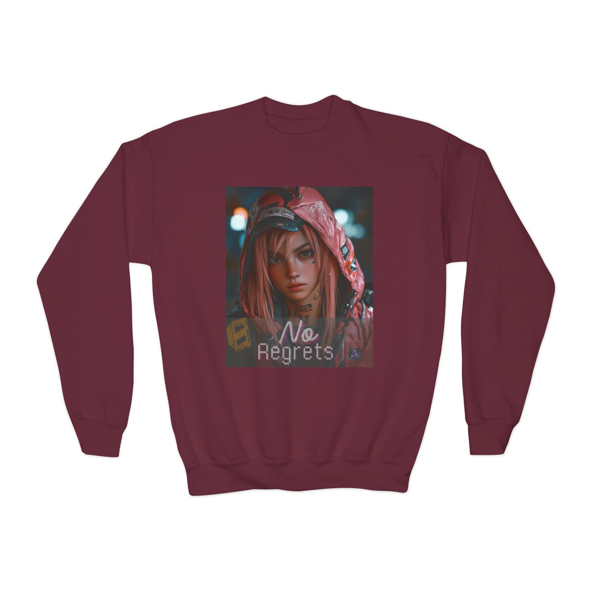 Youth Anime Gamer Crewneck Sweatshirt - No Regrets Design